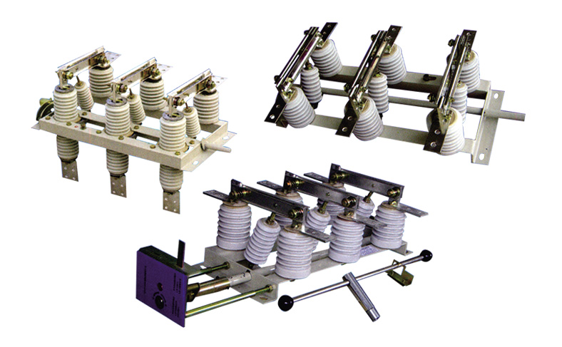 本隔离开关为三极型,由底架、转轴、及杠杆、瓷支柱绝缘子、闸刀及接线板等部分组成。转轴安置在底架上,其上焊有三对杠杆,杠杆通过拉杆瓷绝缘子与闸刀相连。转轴伸出底架,其任何一段均可与操作机构相连。