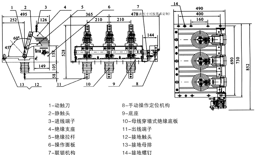 引用标准:GBl985-1989交流高压隔离开关和接地开关; IEC129-84交流隔离开关和接地开关