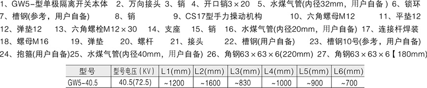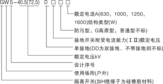 GW5-40.5(72.5)户外高压交流隔离开关为交流50Hz的户外高压电器设备,额定电压等级有40.5kV,供高压线路在无负载情况下进行开合,以及对被检修高压母线、断路器等电气设备带电的高压线路进行电气隔离之用,也可用于开、合小的电容或电感电流。
