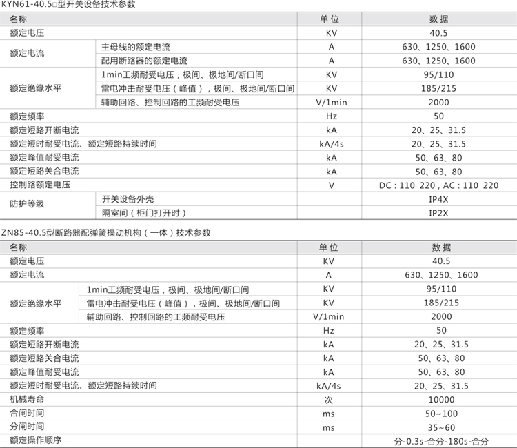 KYN61-40.5□ 型铠装移开式交流金属封闭开关设备 (以下简称“开关设备”) 其主要特点是柜内配用 ZN85-40.5 型全绝缘真空断路器及弹簧操动机构,也可配用ABB的VD4-40.5和HD4-40.5柜体采用敷铝锌板和冷轧钢板喷塑组装而成,提高了手车与柜体的配合精度,手车推进拉出十分轻便,互换性强。外形美观、方案齐全、使用安全可靠。